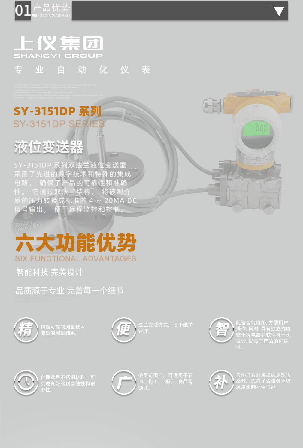 穩(wěn)定可靠:該變送器具有優(yōu)良的穩(wěn)定性和可靠性,量程比可達(dá)100:1,測量速率快,適用于各種工業(yè)環(huán)境。
