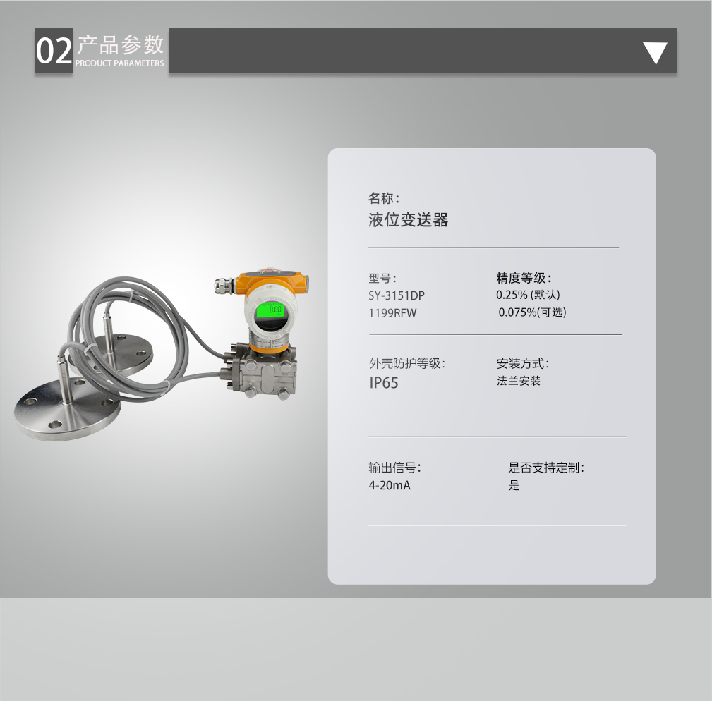 高精度測量:3151DP雙法蘭液位變送器具有高精度測量性能,數(shù)字精度可達(dá)±0.25%,模擬精度為±0.5%±0.1%F.S。